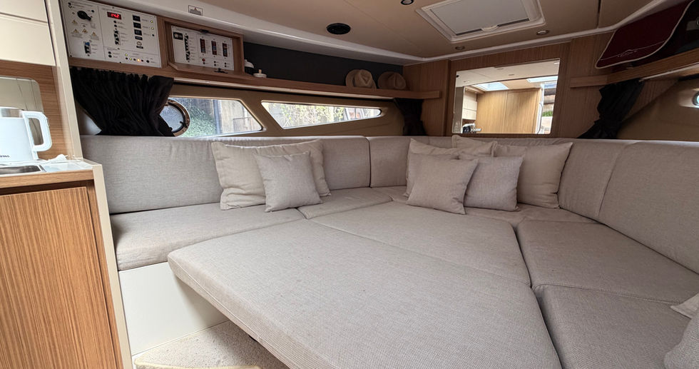 Todo lo que se puede desear en menos de 10 metros, una embarcación versátil que es tanto open como cruiser, ofreciendo grandes espacios externos y una cómoda zona interna para la vida a bordo. La zona living, luminosa gracias a los ventanales laterales, ha sido sabiamente estudiada para conciliar exigencias