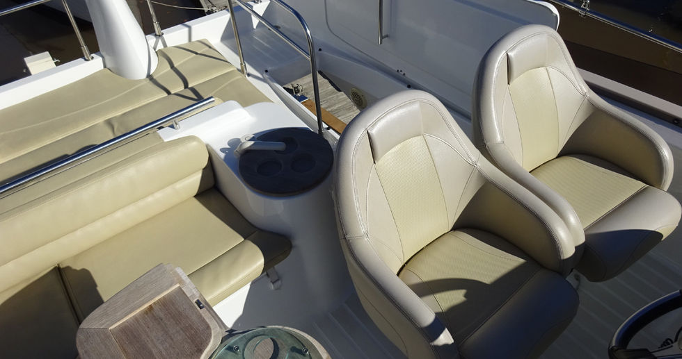 Piso de teca en cockpit, pasillos y proa Piso de madera en el interior